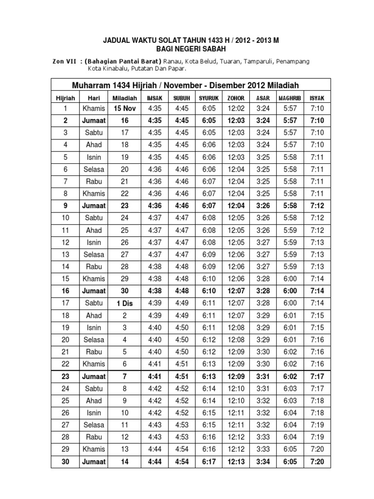 Jadual Waktu Solat 1434 Zon 7 Pdf